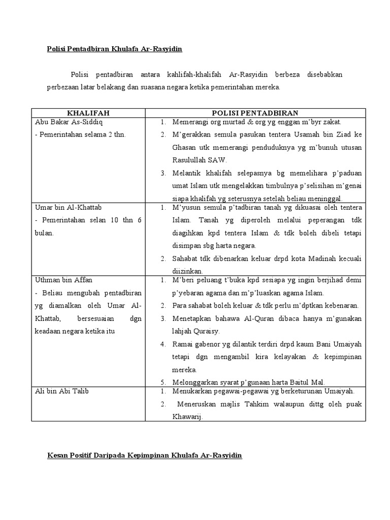 Kerajaan khulafa ar rasyidin adalah kesinambungan daripada kerajaan islam madinah pimpinan nabi muhamad saw. Pertumbuhan peradaban islam pada masa al khulafa ar rasyidin. Ciri kepimpinan khulafa ar rasyidin abu bakar as siddiq r.a tegas tegas memerangi golongan murtad,nabi palsu dan golongan yang enggan. 2) apakah gekaran saidina umar al khattab? Buttit cute n comell on bab 6.